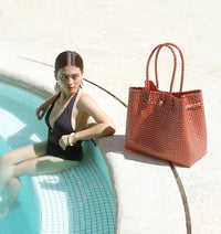 TOKO Recycled Woven Tote Bag, in Red & White - Large / Bali Red / Recycled plastic