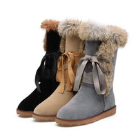 Women nubuck snow boots big size snow shoes lace up cotton booties - US8.5/40 / Apricot