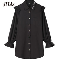 Harajuku Cartoon Print High Waist Casual Shirt Dresses Women Spring - S / black