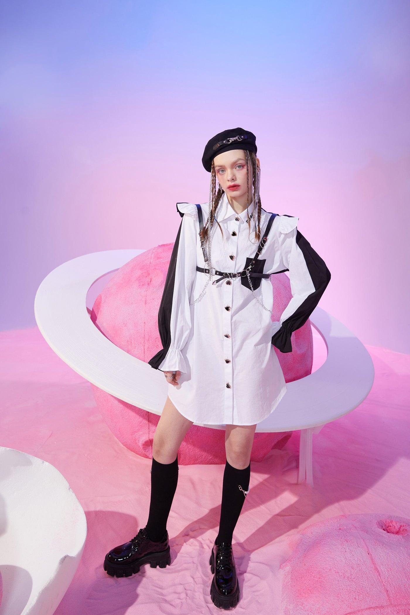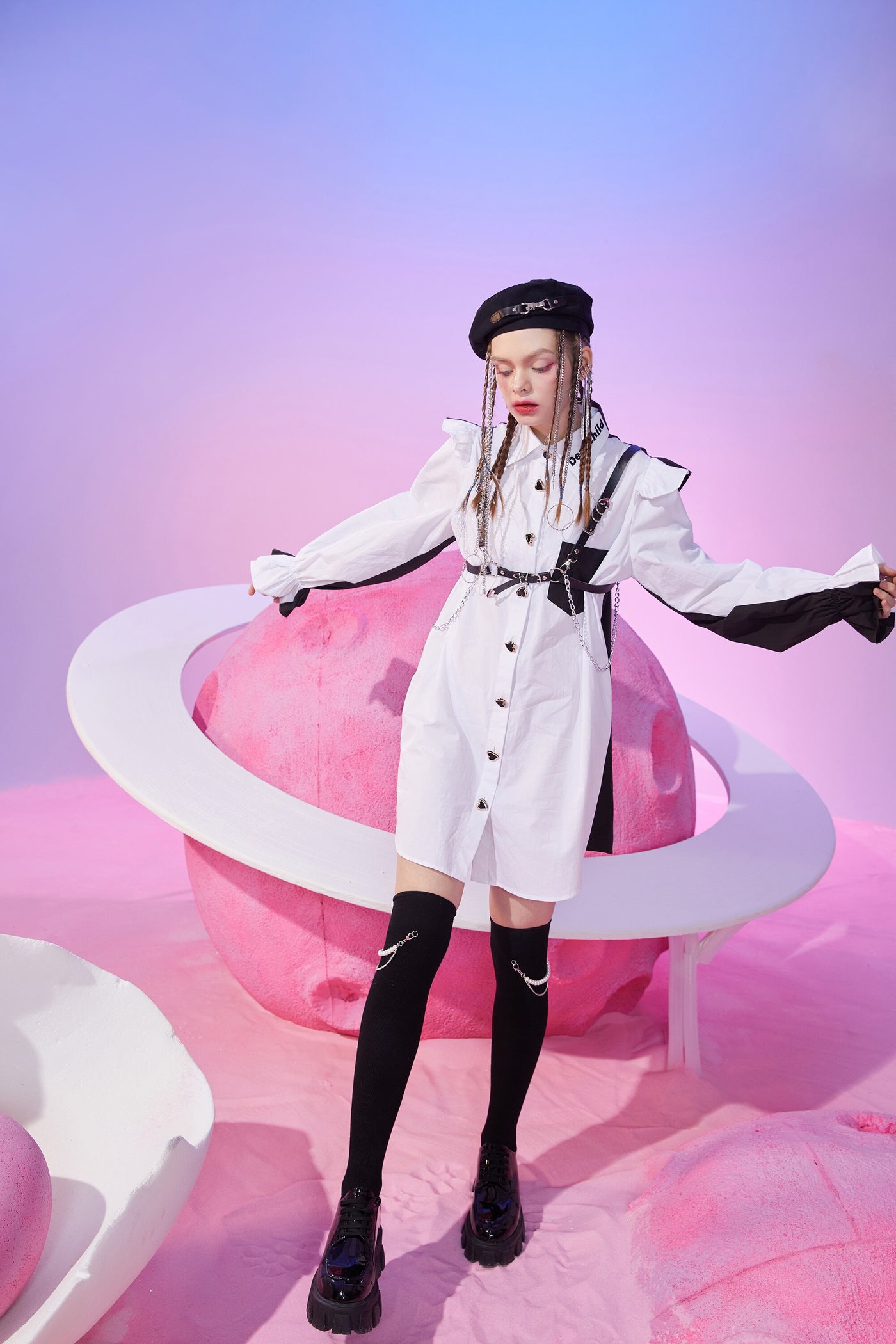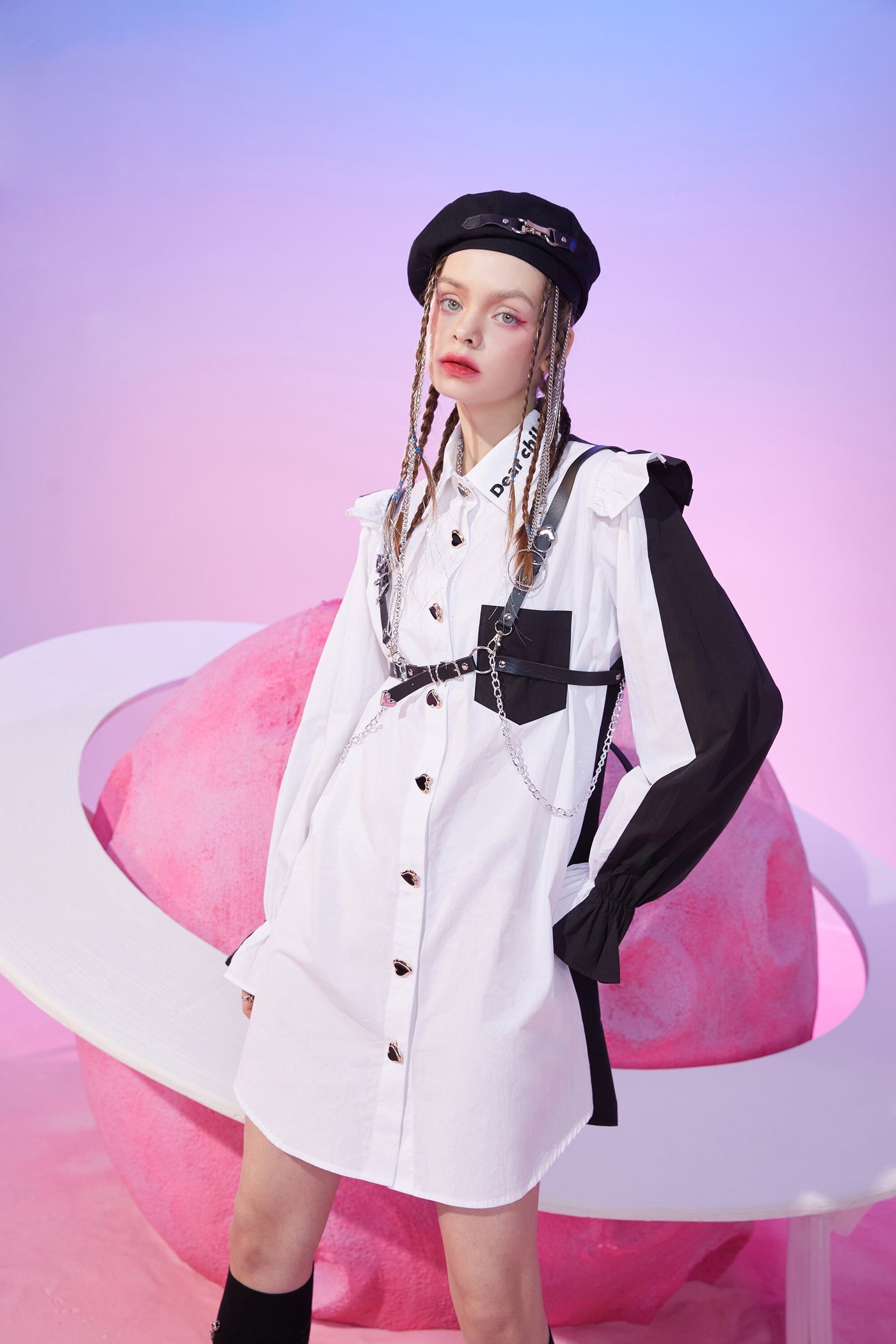 Harajuku Cartoon Print High Waist Casual Shirt Dresses Women Spring Stylish Punk Ladies Vintage Summer Dress Origin: CN(Origin)Season: SpringNeckline: Turn-down...