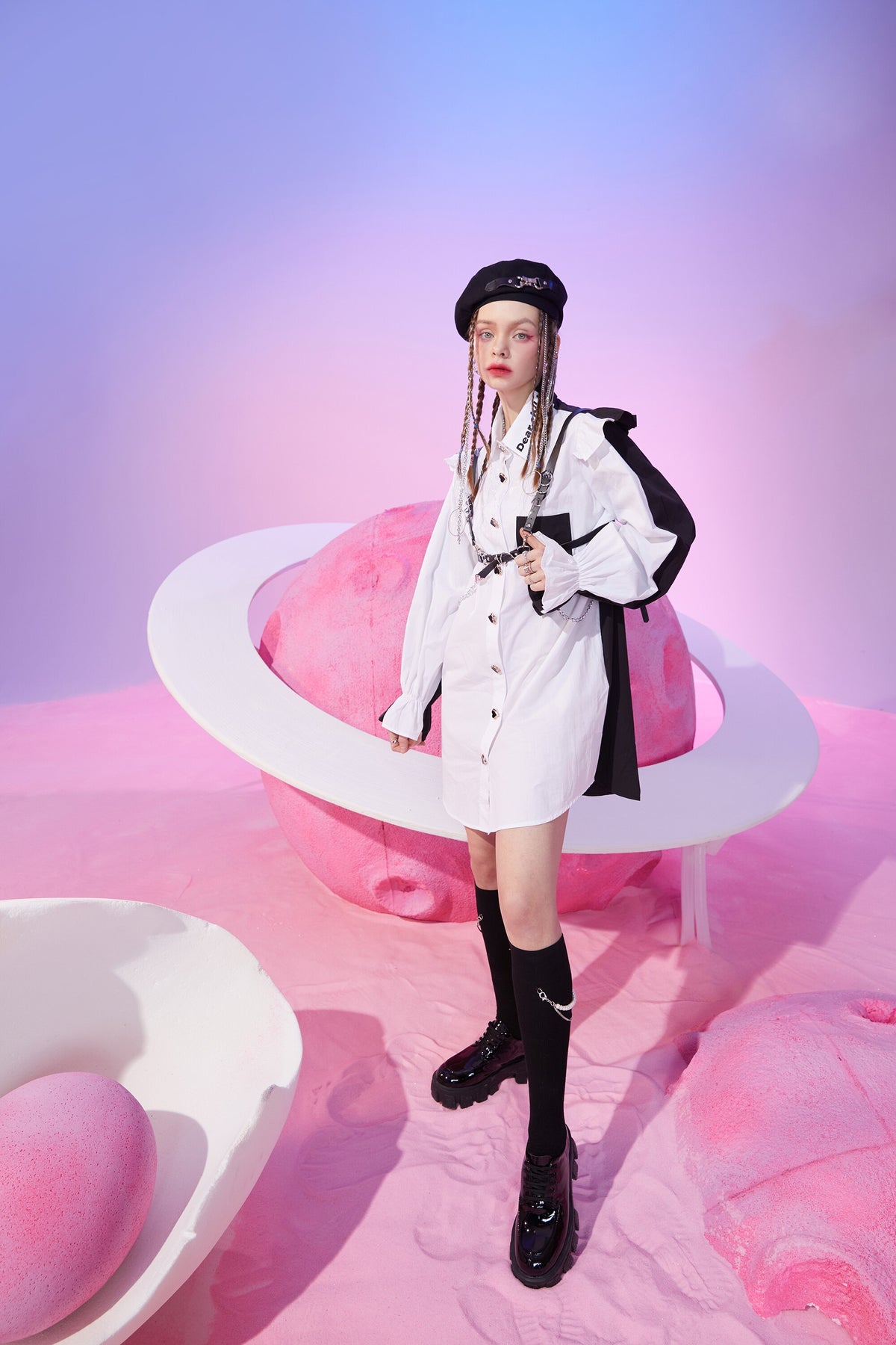 Harajuku Cartoon Print High Waist Casual Shirt Dresses Women Spring