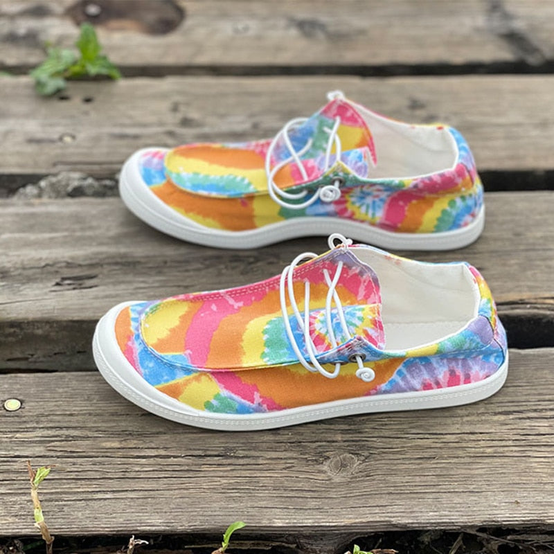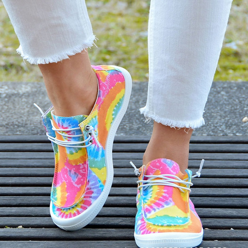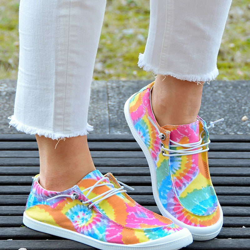 Women Canvas Shoes Fashion Lace Up Tie Dye Flat Sneakers Female Casual - Blue / 36 / United States