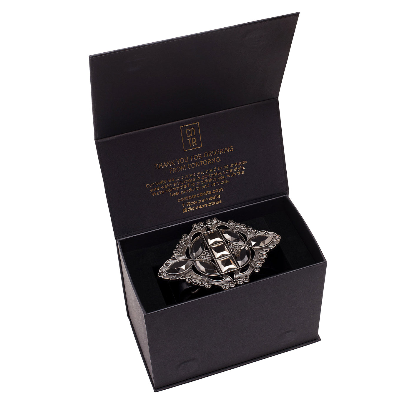 Color: Black Featuring round, square, and petal-shaped stones, the Paloma Belt exudes casual elegance. This women’s leather belt is crafted...