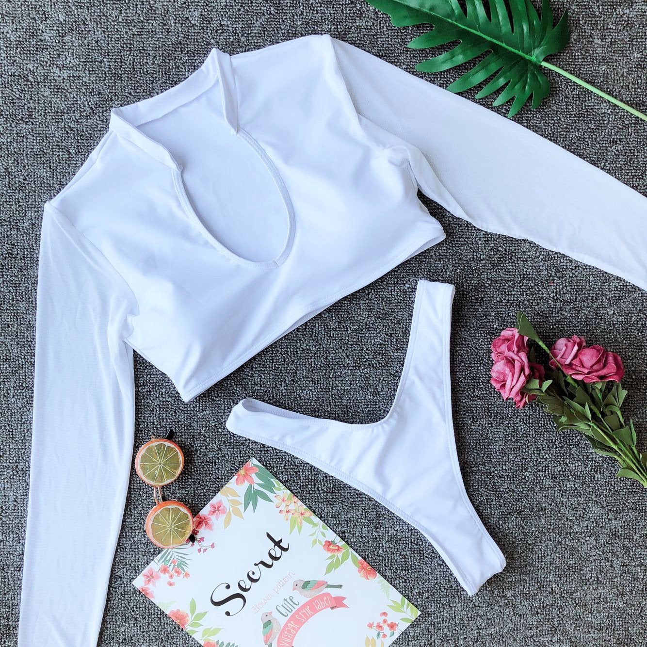 Swimwear for Women High Waist Long Sleeves Bikinis Set High Cut Sexy - S / White 01