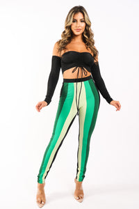 Elevate your casual style with this Color Blocked Leggings and Matching Off Shoulder Top Outfit 2 Piece Set. This comfortable...