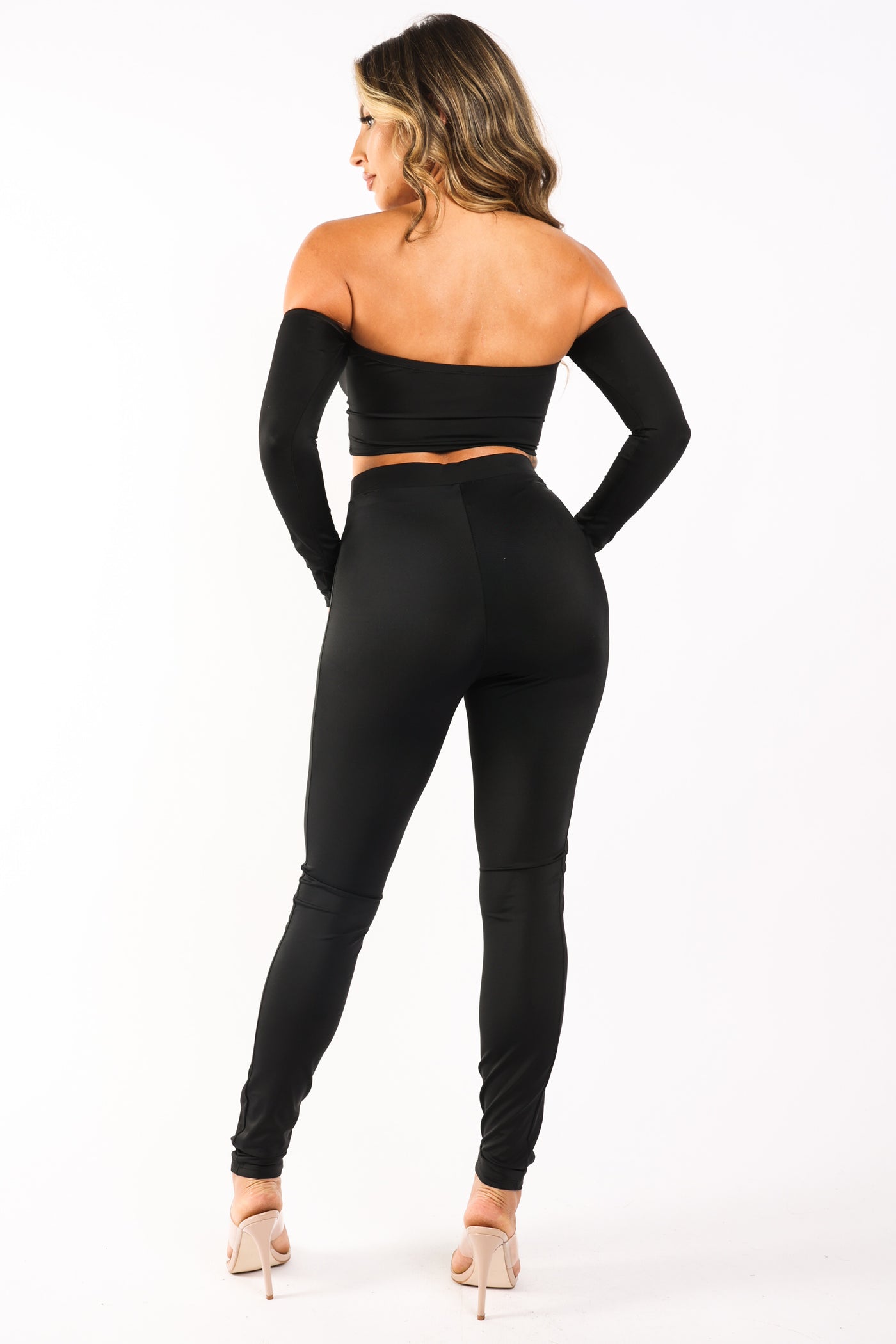 Casual Leggings And Matching Off Shoulder Top Outfit Set HUNTER