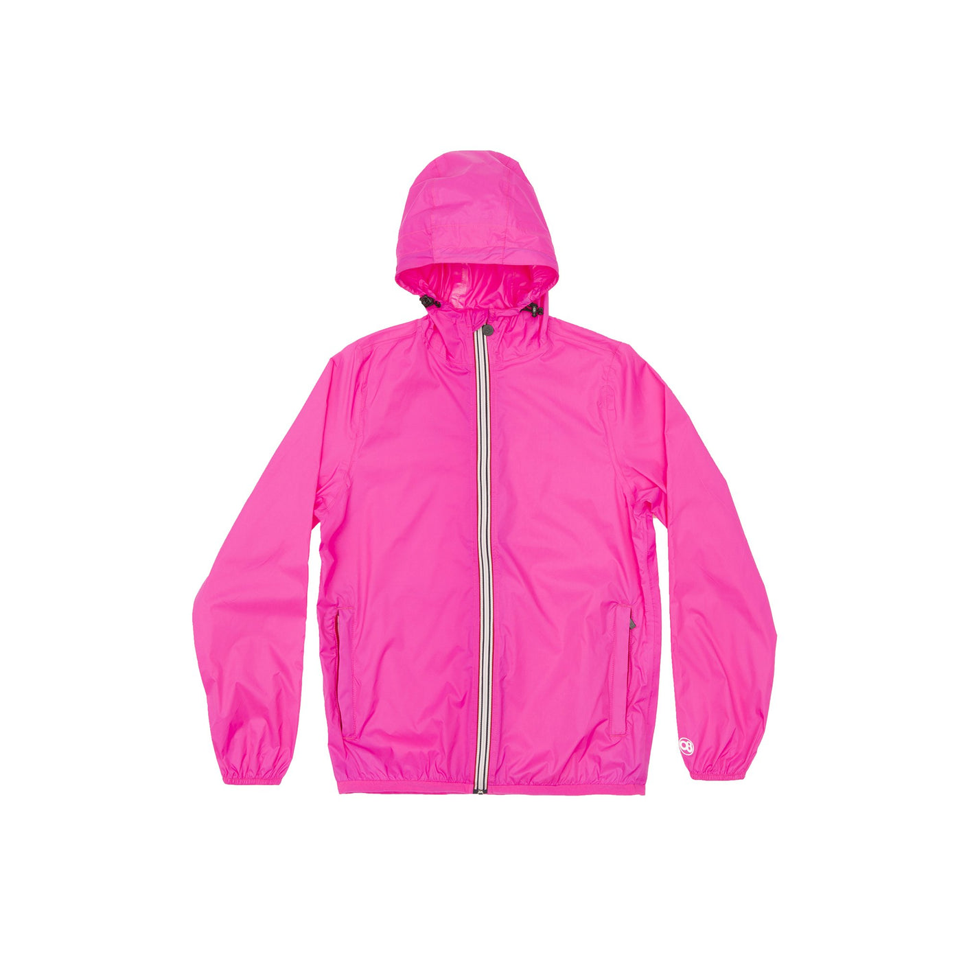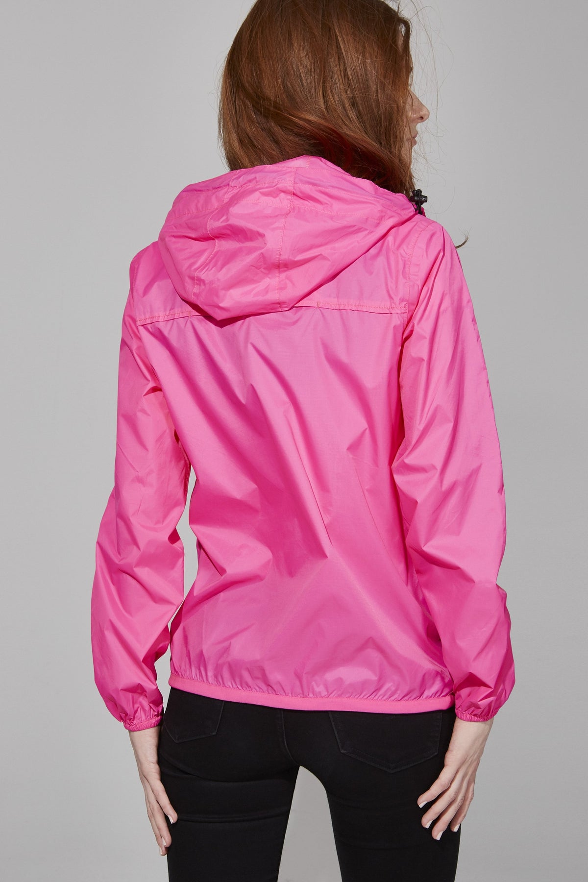Women's pink fluo full zip packable rain jacket and windbreaker ***