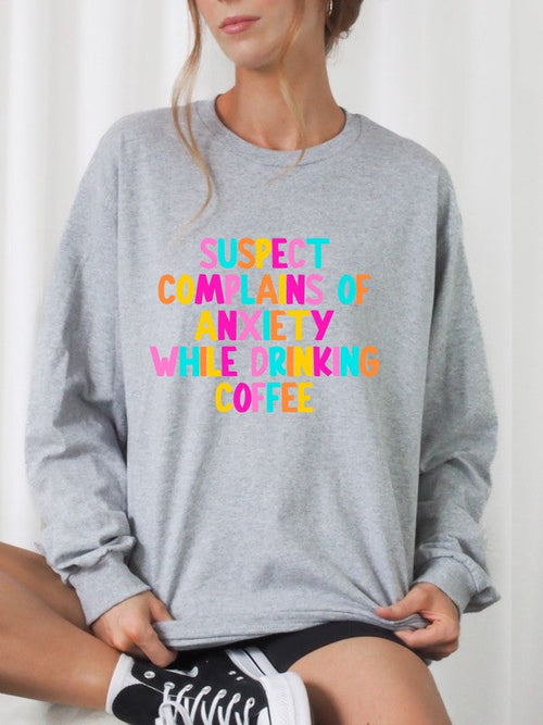 Suspect Complains of Anxiety While Drinking Coffee Graphic Crew Sweatshirt80% ring spun cotton / 20% polyester