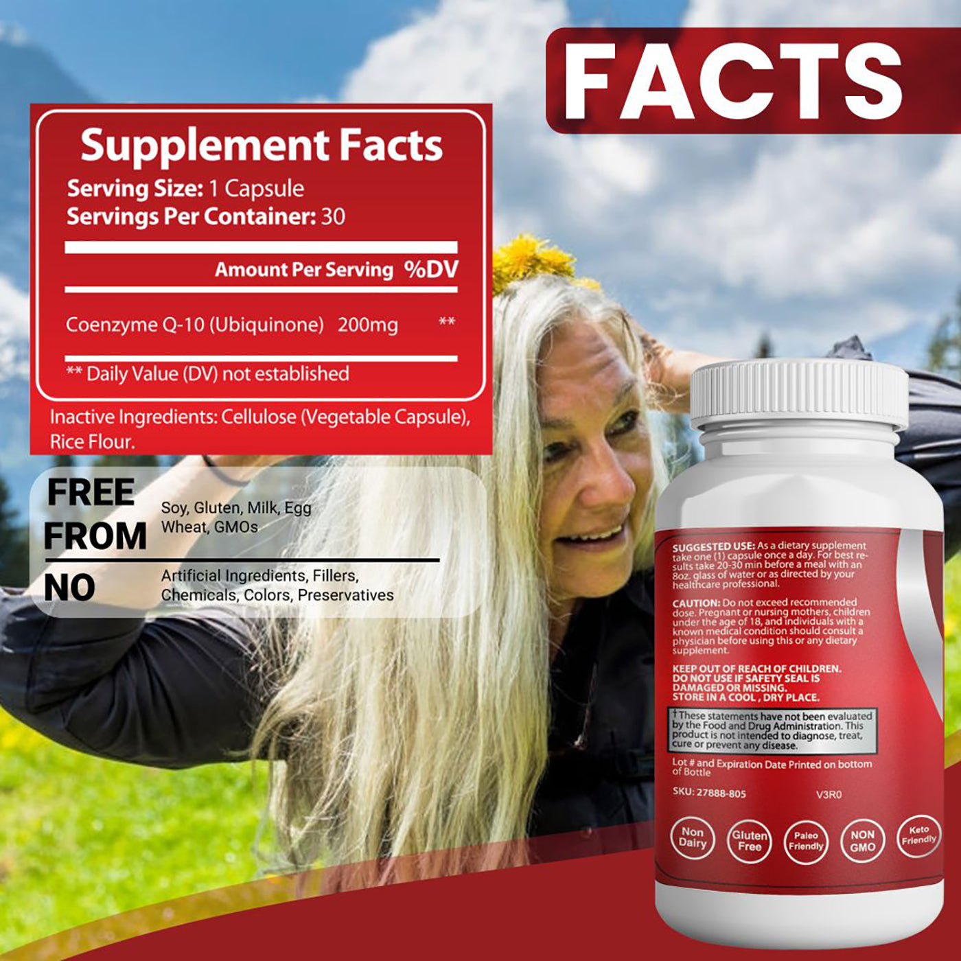 ❤️ ESSENTIAL INGREDIENTS ONLY – Our premium high absorption coq10 formula contains 200mg of CoQ10 in each vegetable capsule. It's unflavored, cruelty-free, gluten-free, and non-dairy.