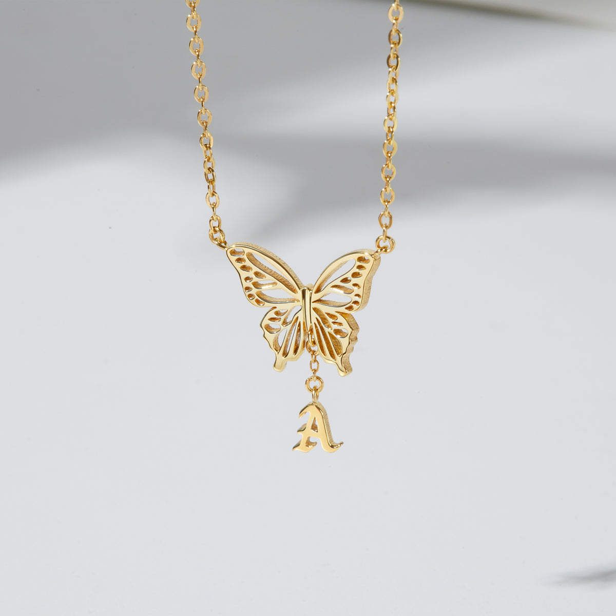 Custom Letter Necklace, Initial Jewelry, Initial Butterfly Necklace