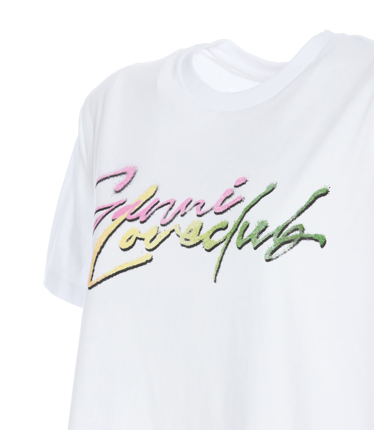 Material : Cotton 100%Made in : DenmarkDescription : Ganni white t-shirt crewneck frontal print logo