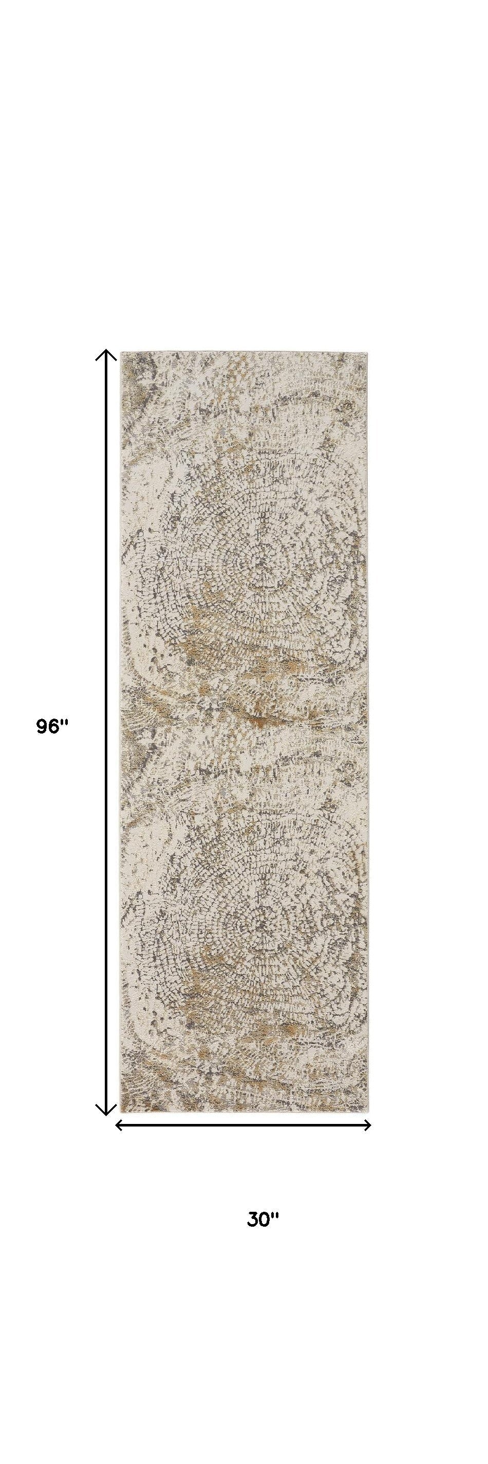 4' X 6' Gray Ivory And Tan Abstract Area Rug - 8' Runner
