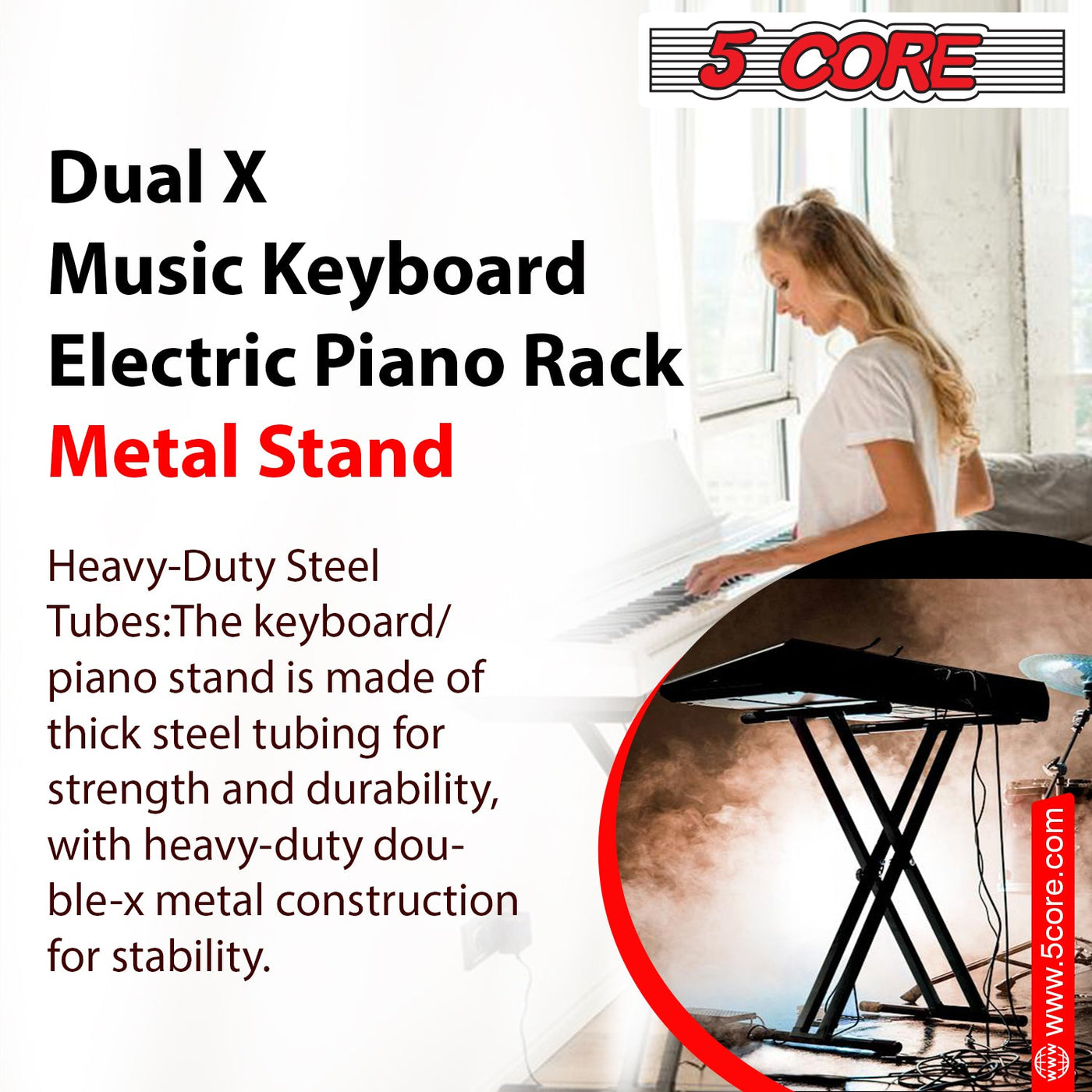 5Core Keyboard Stand Double X Style Adjustable Lift Piano Riser For 49