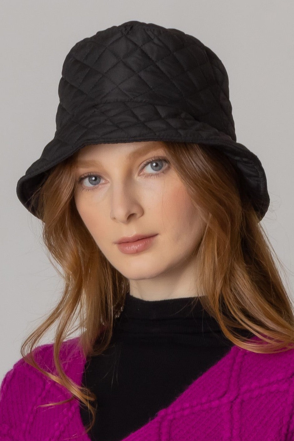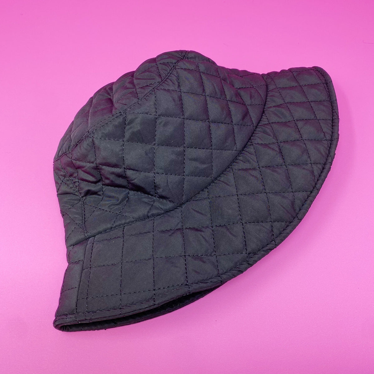 This nylon quilted bucket hat is so sleek and chic! Has great details all around. Lined inside. Lightweight. Great to...