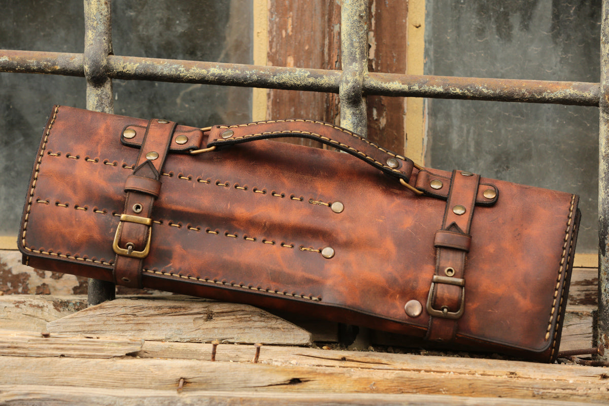Genuine Cow Leather knife Pouch Knife Roll Chef bag Professional Case
