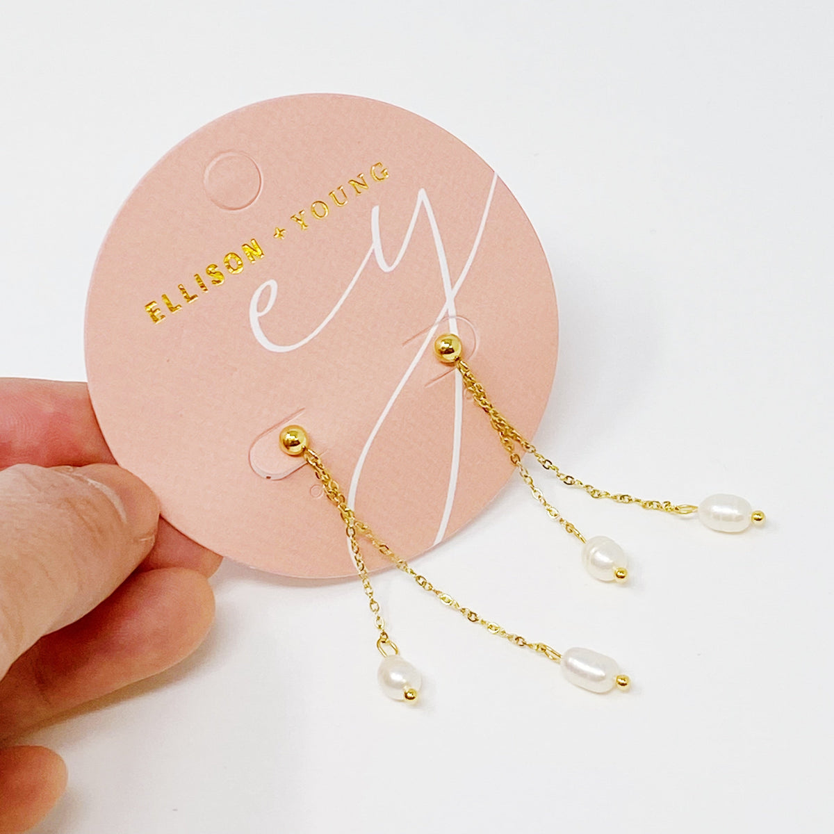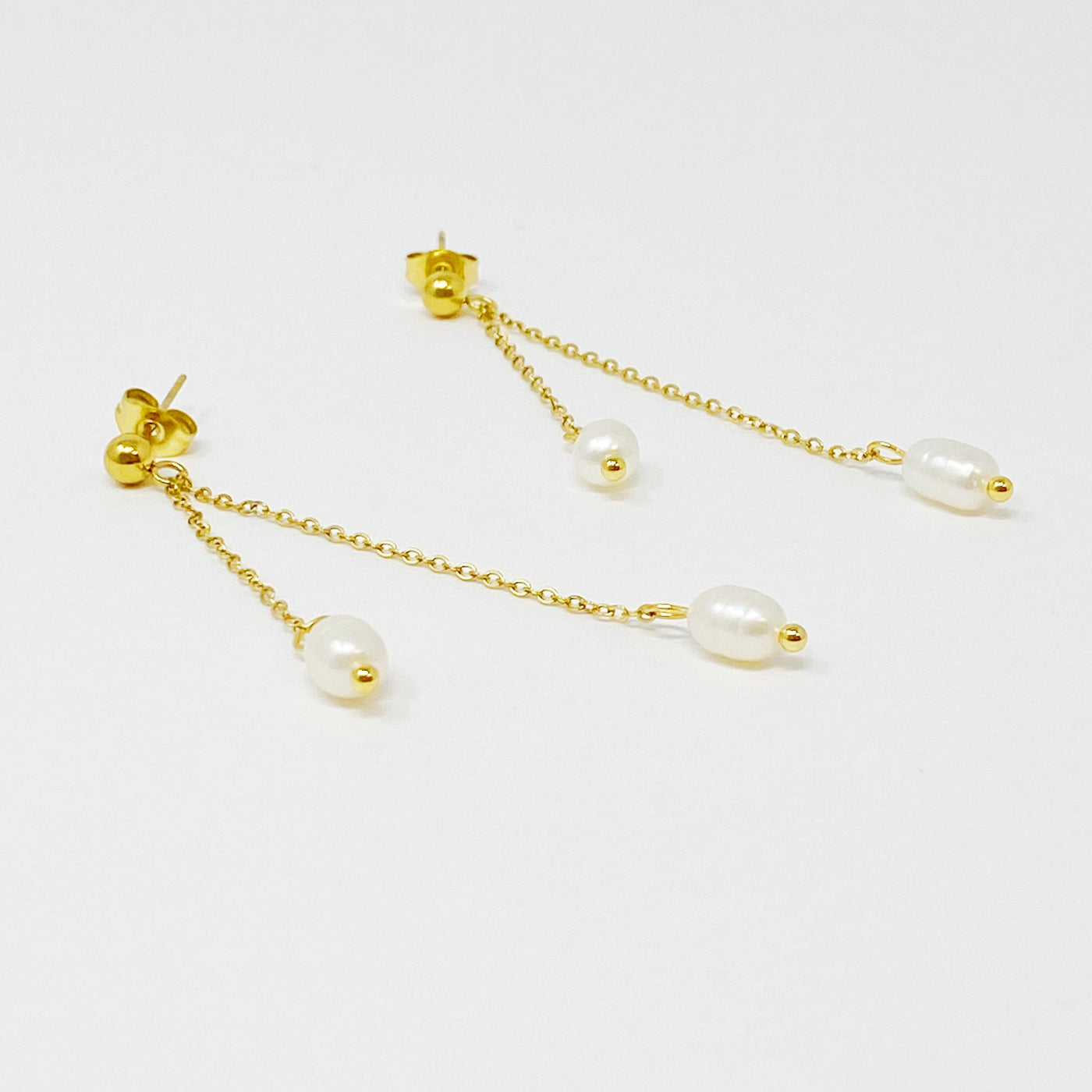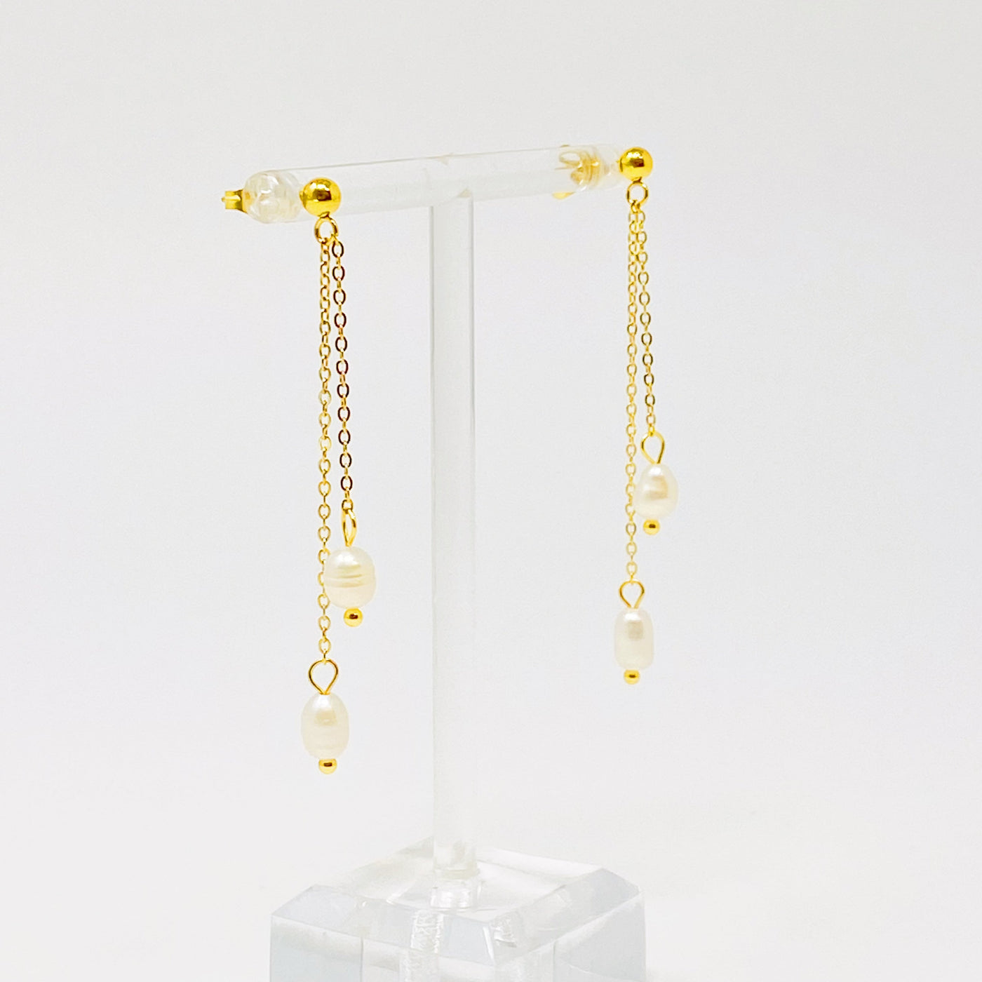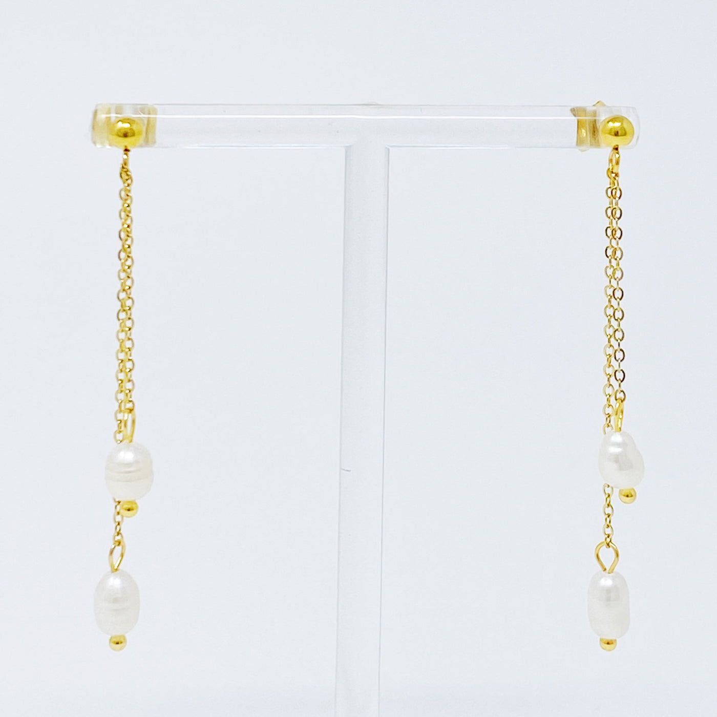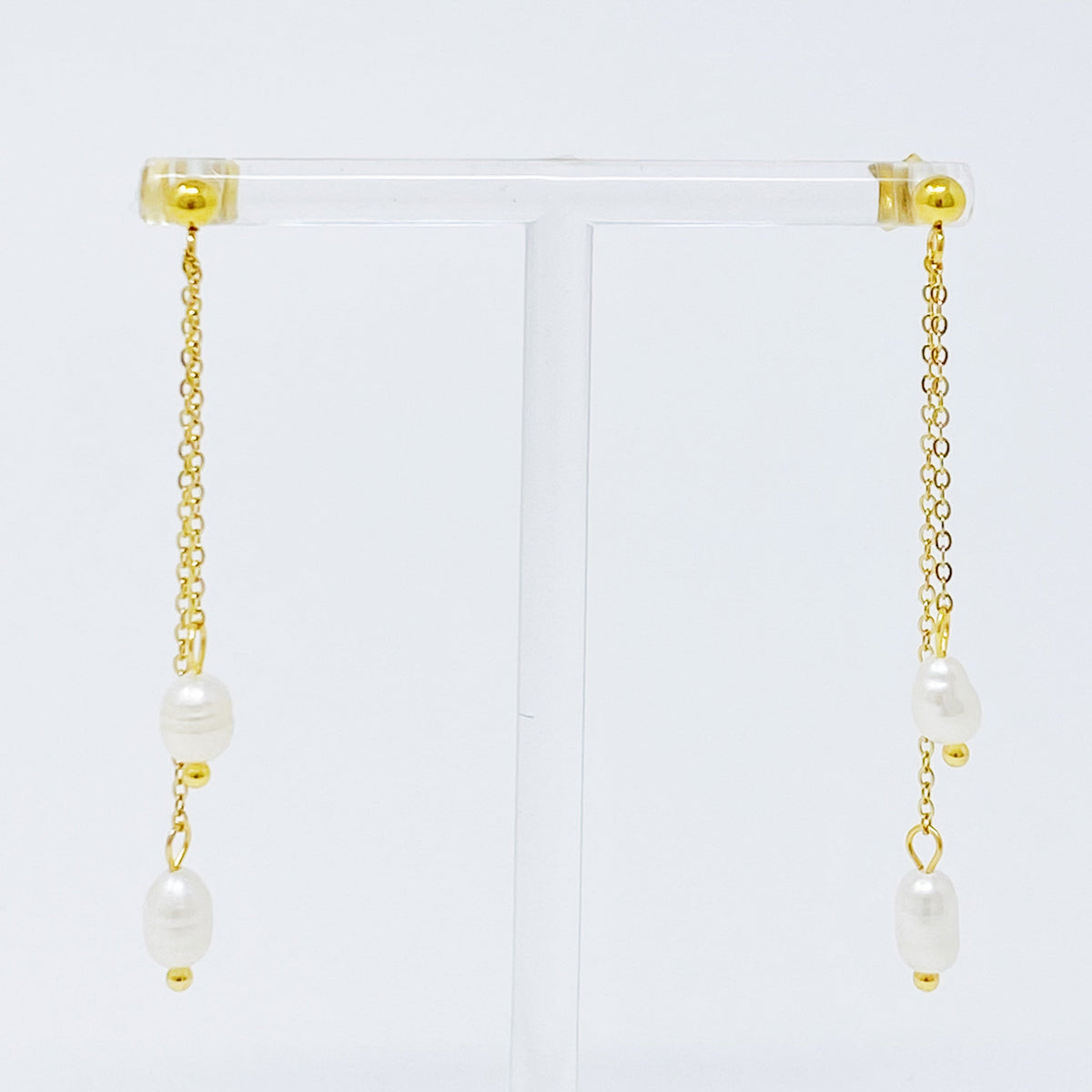 Long chain strands with 2 freshwater pearls. Beautifully dangles and great for everyday and any occasions! Dimensions: approximately 2.2” drop...