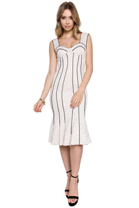 Bella Dress - Bustier lace mermaid dress with black piping detail - 4 / white lace / tan lining / black contrast piping