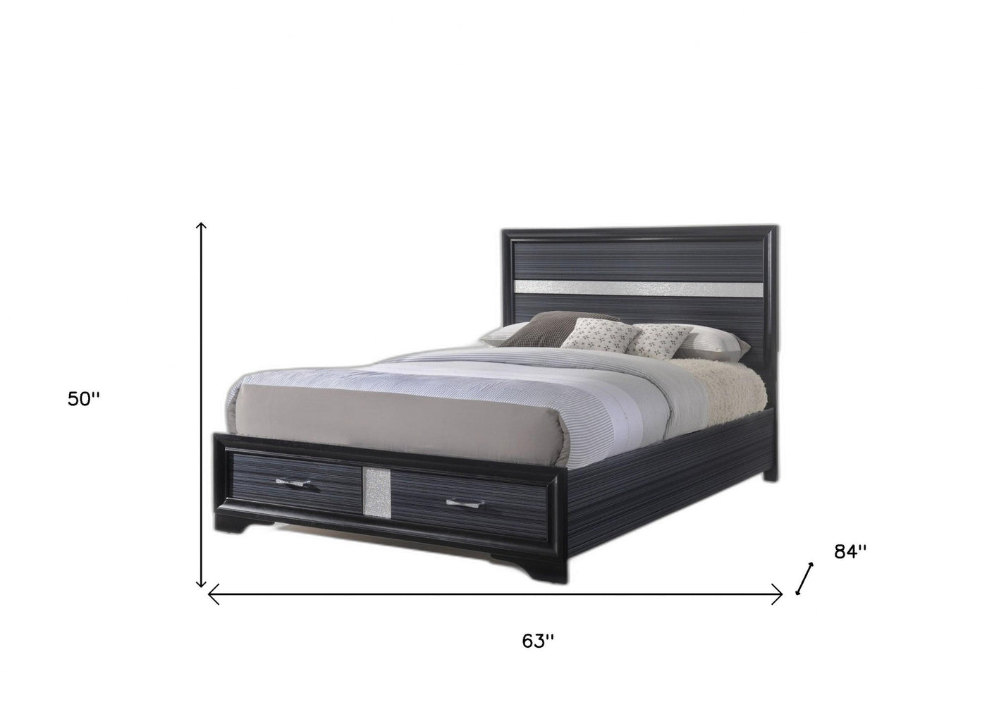 63inches X 84inches X 50inches Black Wood Queen Bed wStorage