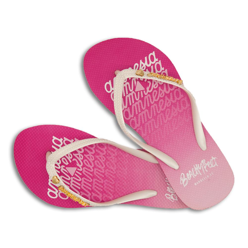 BeachyFeet® has teamed up with renowned Ibiza Super Club Amnesia to produce a range of exclusive flip flop designs. Known as the temple of electronic music our bold and bright designs are inspired by late night's, deep bass and bouncin' beats. Featuring the iconic Amnesia pyramid logo this pinky print is a pool party/dance floor must have.