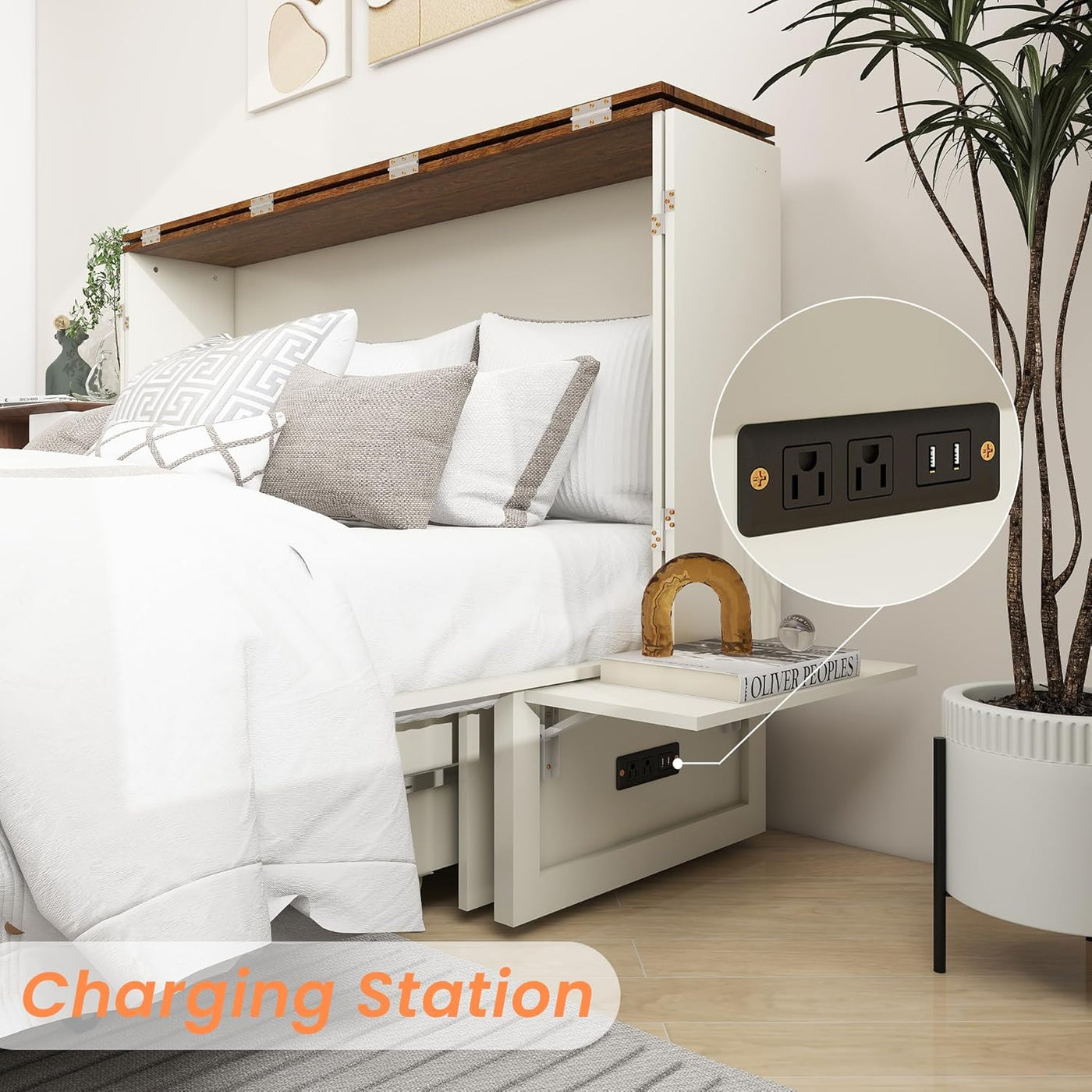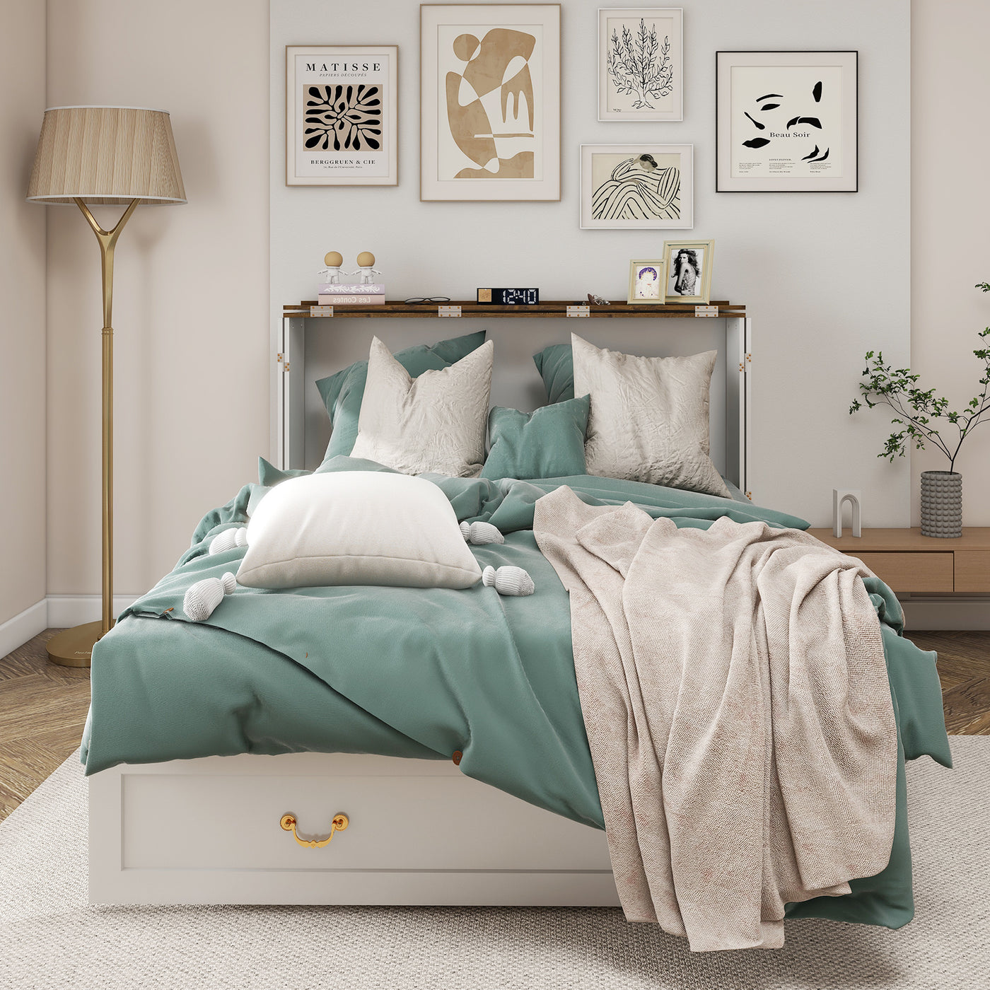 Full Size Murphy Bed-This warm white murphy bed full measures 84"W x 58"D x 44"H, the twin murphy bed with...
