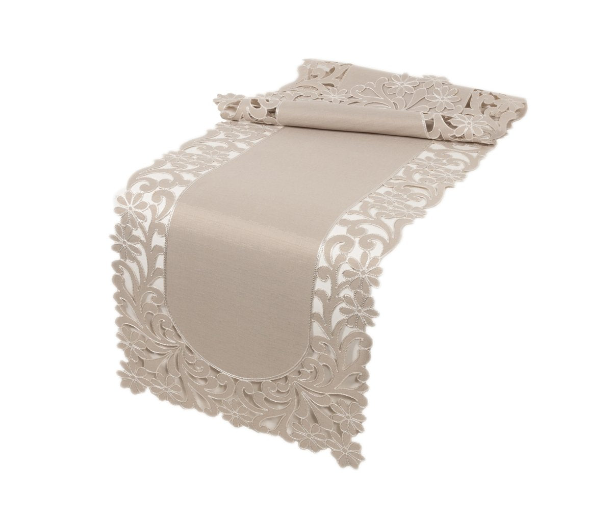Description Floral cutwork edges trimmed on a textured luxury Taupe background with exotic embroidery designs create a mood for your...