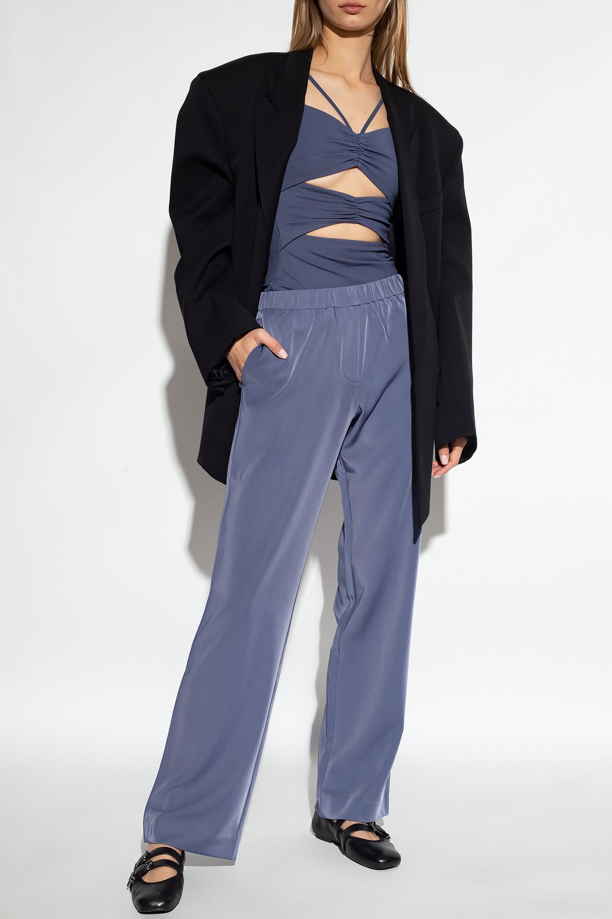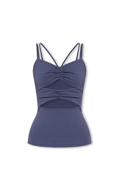 Description : Dark blue, Mona sleeveless top with adjustable shoulder straps as