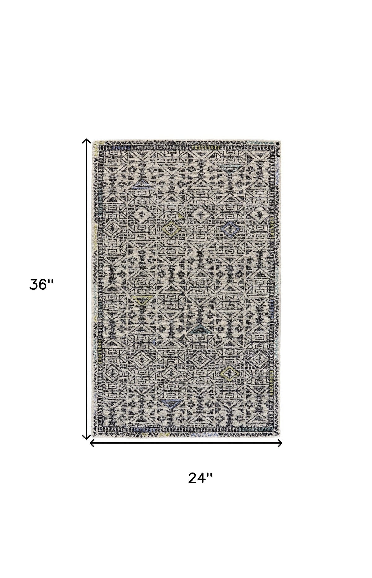 4' X 6' Gray Ivory And Black Wool Geometric Tufted Handmade Area Rug - 2' x 3'