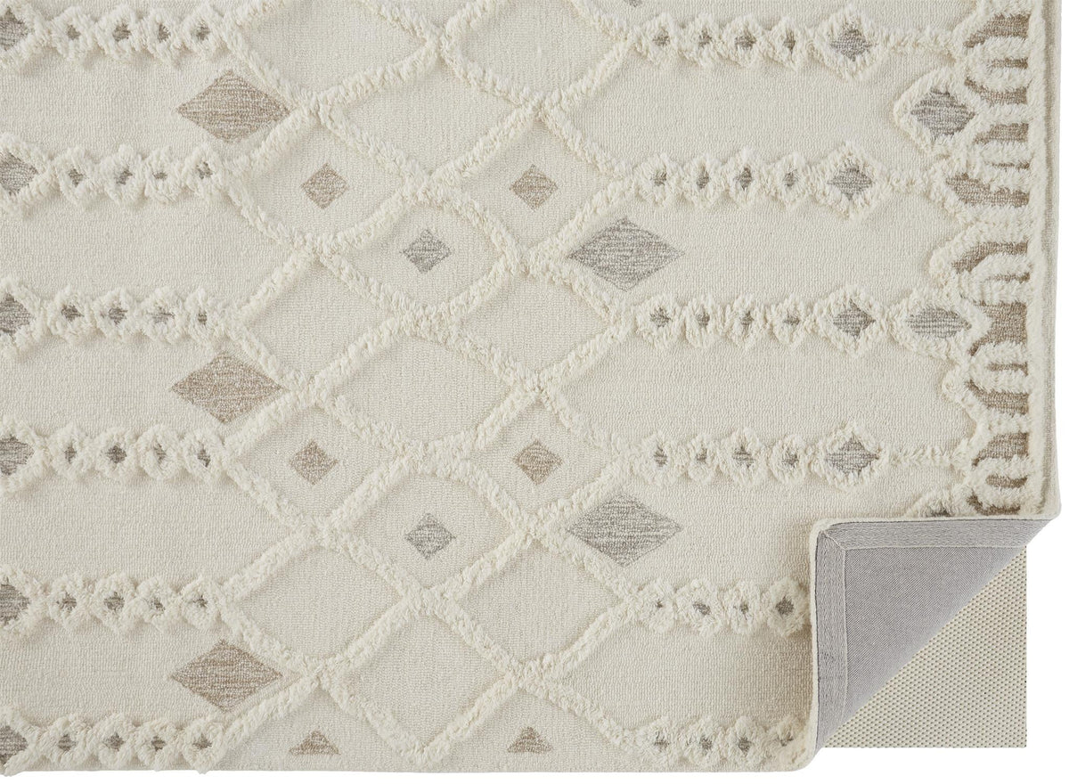 Set an inviting tone in your space with this 4' x 6' ivory tan and silver wool geometric tufted handmade...