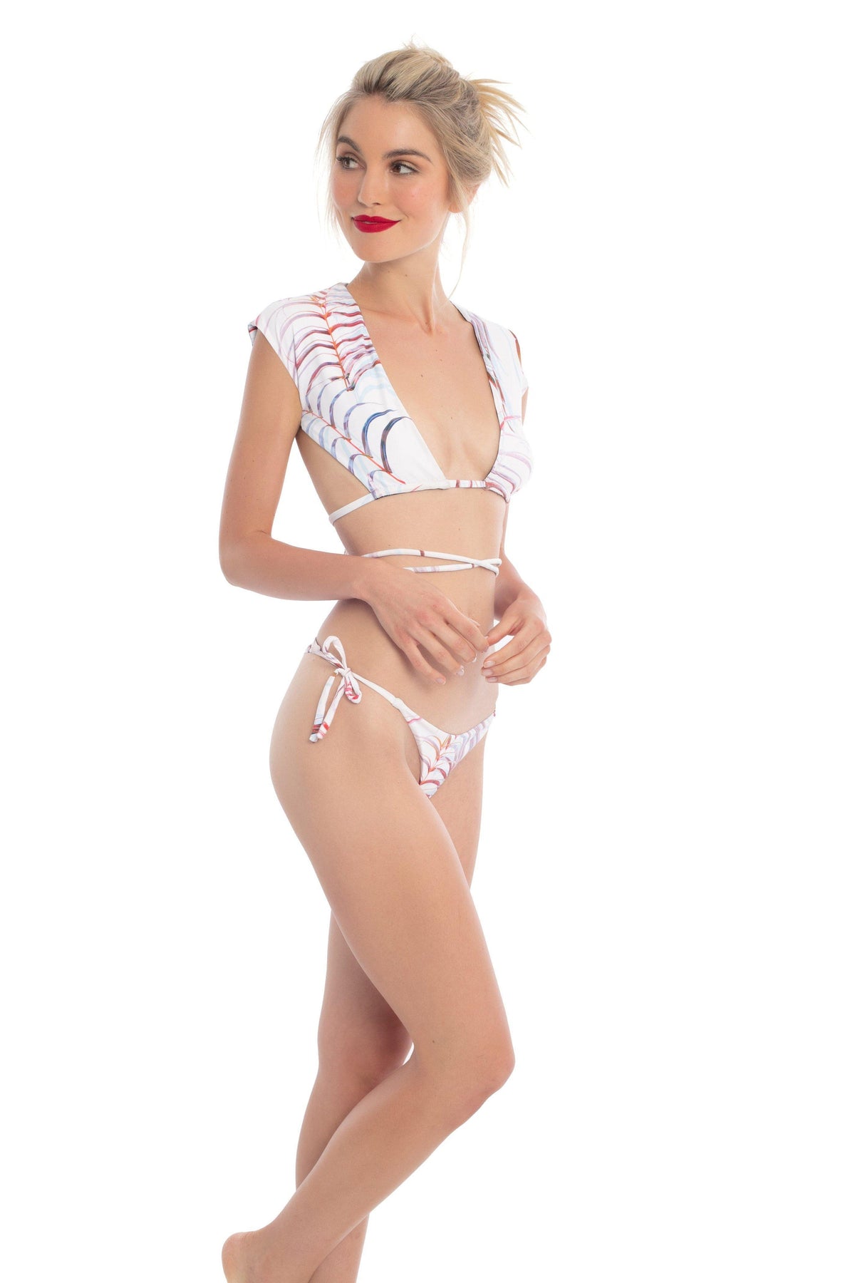 Our staple bikini top features comfortable cap sleeves and cute back ties.