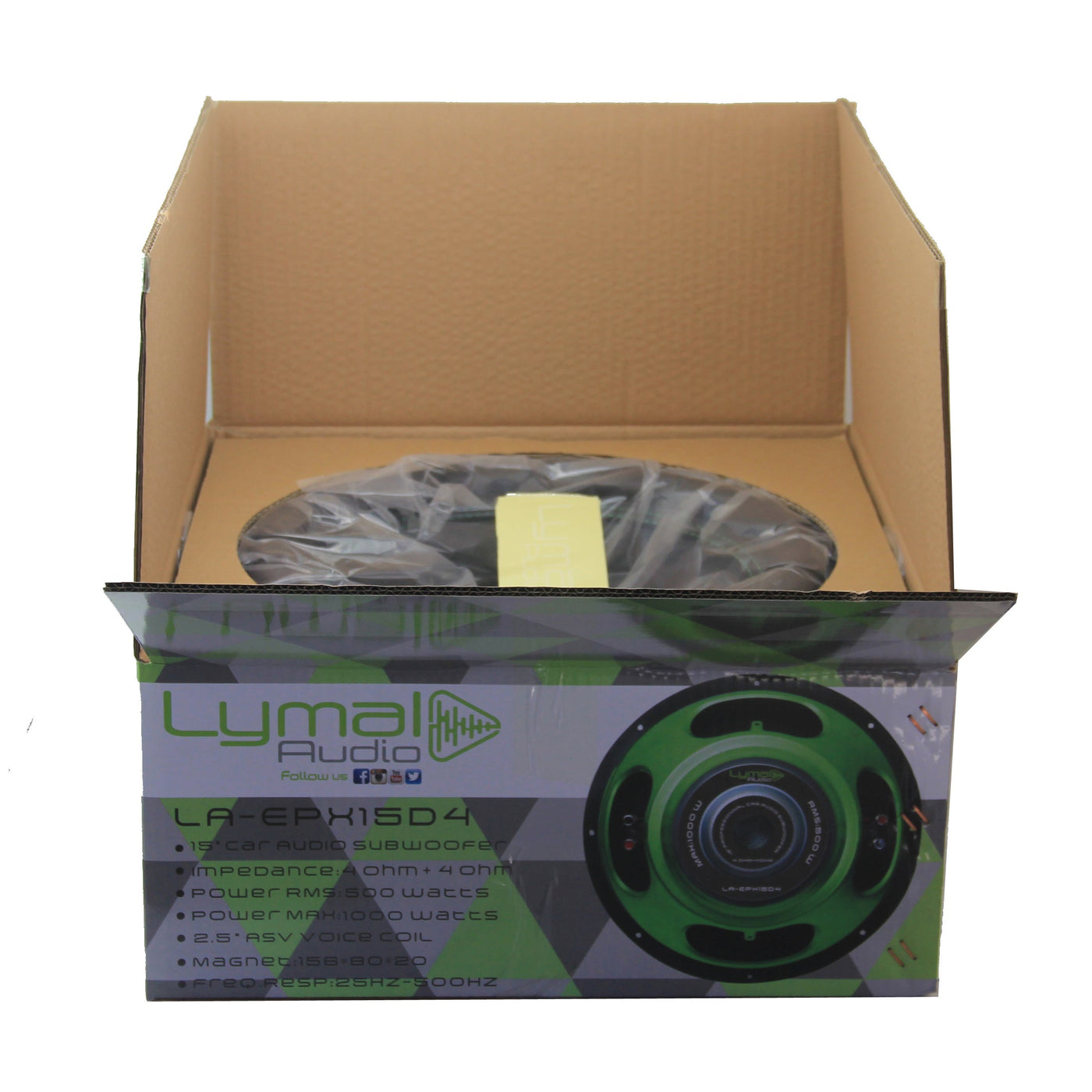 Lymal Audio LA-EPX15D4 Subwoofer 1000 Watts DVC 4-OhmModel: LA-EPX15D4General Features:12" Dual Coil 4 ohm + 4 ohmPower Handling: Power Max:...