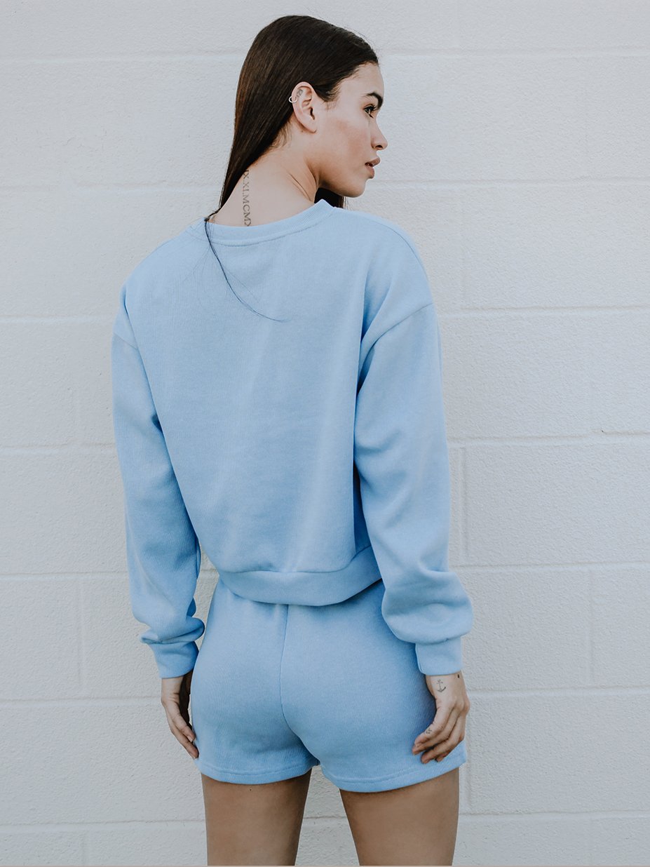Cozy up in comfort with the Melly shorts, a lounge-worthy favorite! These shorts are made from a soft cotton blend in a pretty pastel hue and feature side pockets and a flattering high-rise waist with a drawstring cord. Top off this look with the Melly sweater for a trendy and minimalistic look.