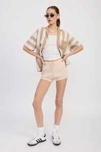 OVERSIZED BUTTON UP SHIRT - S / MOCHA STRIPE