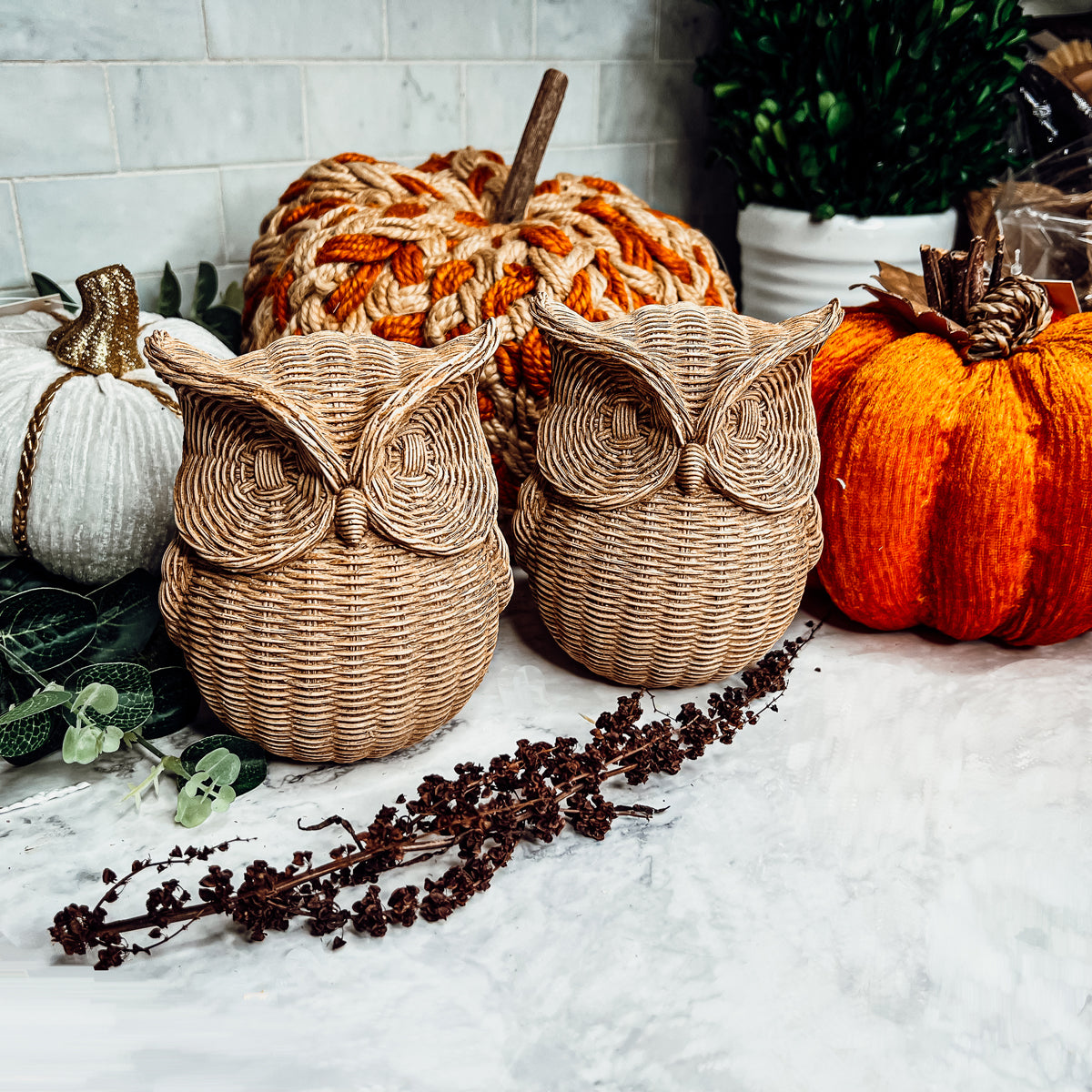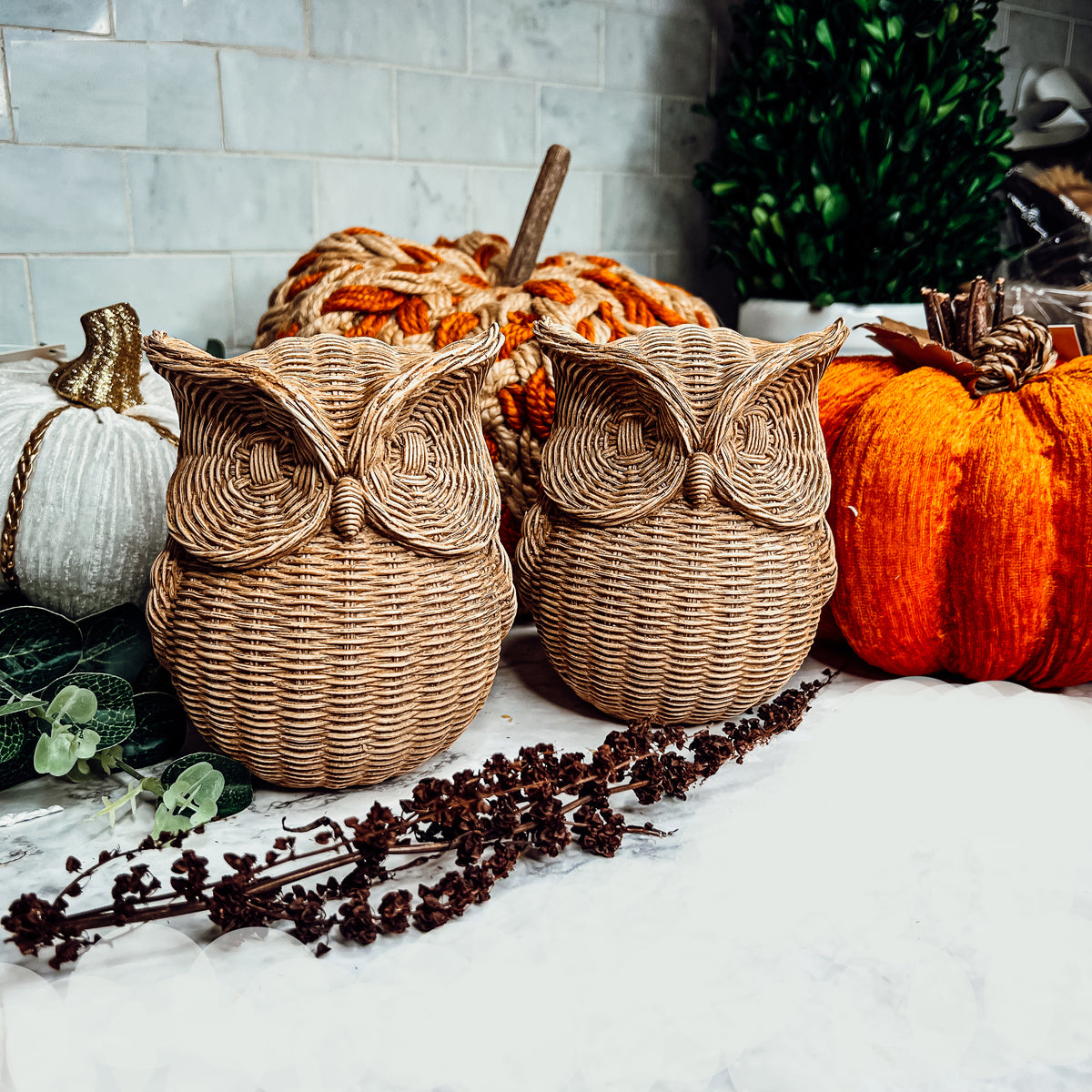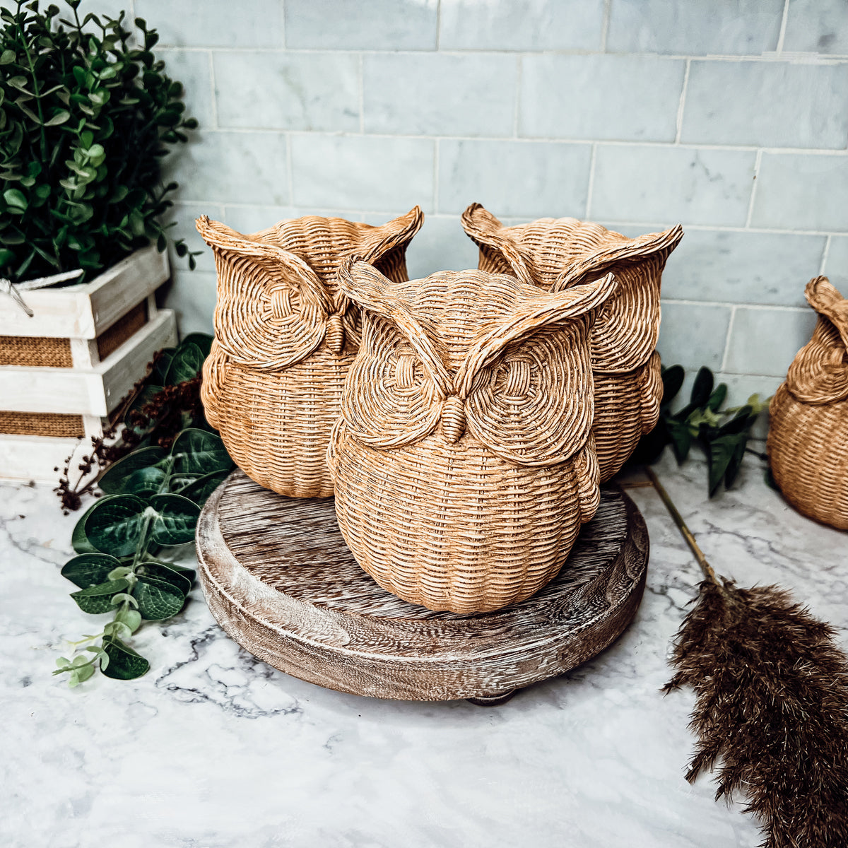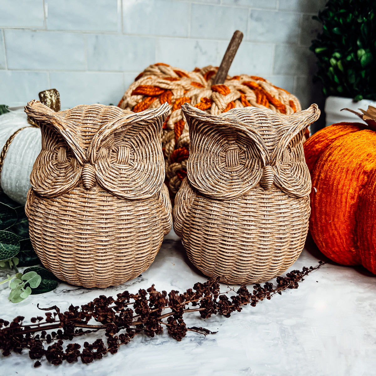 Basket Weave Owl Figurine Made from Resin This owl tabletop accessory, featuring a basketweave design, looks rustic as a bookend...