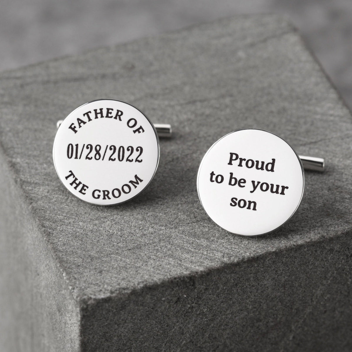Personalized Cufflinks, Father Of The Groom Gift, Dad Gift from Son - Silver