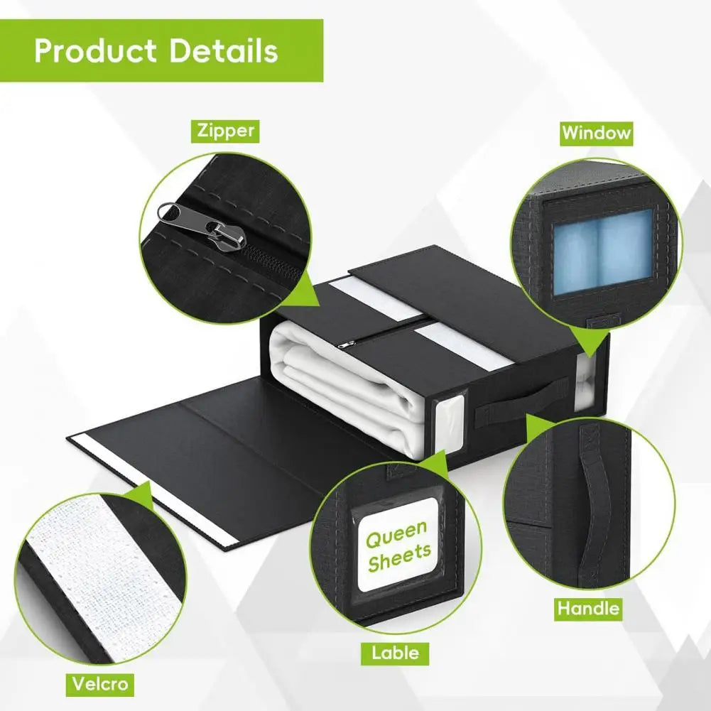 Portable Handle Bed Sheet Box Bed Sheet Storage Box Capacity Bed Sheet Storage Box with Window Dust Proof Foldable for...