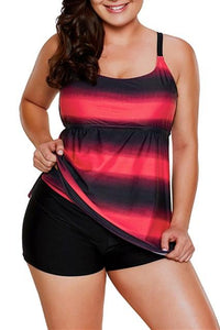 Red Black Color Block Criss-Cross Straps Plus Size Tankini Set