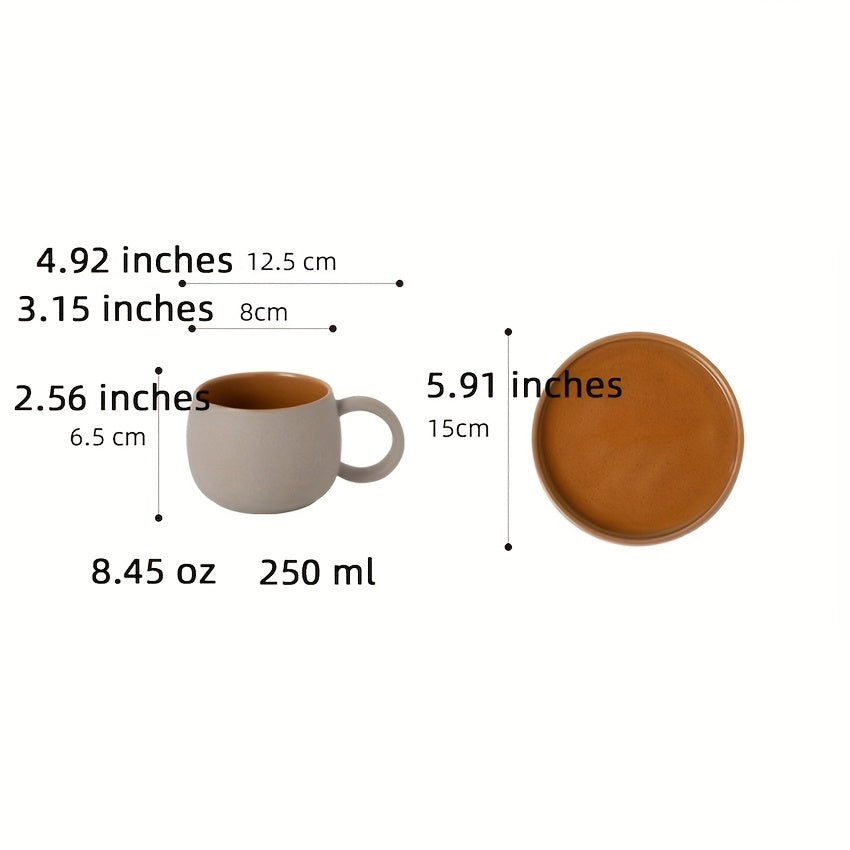 Retro Colorblock Insulated Ceramic Coffee Mug and Saucer Set - Brown Sandy Coffee Cup And Saucer